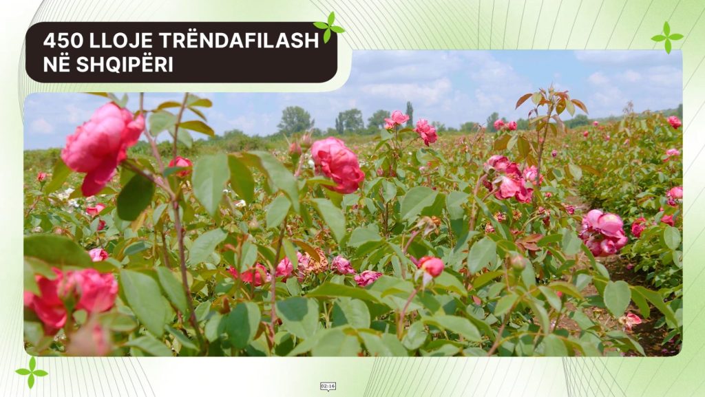 Në Shqipëri janë sjellë rreth 450 lloje të ndryshme trëndafilash, nga të cilat aktualisht janë përshtatur rreth 350, pasi një pjesë nuk i kanë rezistuar klimës së Lushnjes. Në rreth 2 hektarë tokë prodhohet trëndafili për vaj esencial, i cili përdoret si për trajtime shëndetësore — përfshirë edhe ndikimin kundër depresionit — ashtu edhe për kozmetikë, si kremra apo tonifikantë për fytyrën.