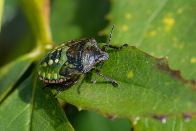 I njohur si insekti që mban erë (Nezara viridula), ka filluar të aktivizojë sezonin e rritjes më herët në dimrat më të ngrohtë dhe për pasojë të shkaktojnë dëme më të konsiderueshme në të mbjella. Ushqehet me fara, fruta dhe kërcej, të cilat mund të ulin rendimentin dhe cilësinë. Strategjitë e menaxhimit mbështeten kryesisht në insekticide, por këto mund të jenë të vështira për t’u integruar me metoda të tjera dhe mund të çojnë në rezistencë.
